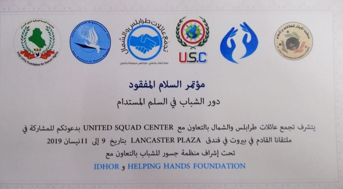 بدعوة من تجمع عائلات طرابلس والشمال برئاسة المستشار عدنان العمري وبالتعاون مع يونيتد سكود سنتر يقام مؤتمر بعنوان ((السلام المفقود .. دور الشباب في السلام المستدام تحت إشراف منظمة جسور للشباب في بيروت ..