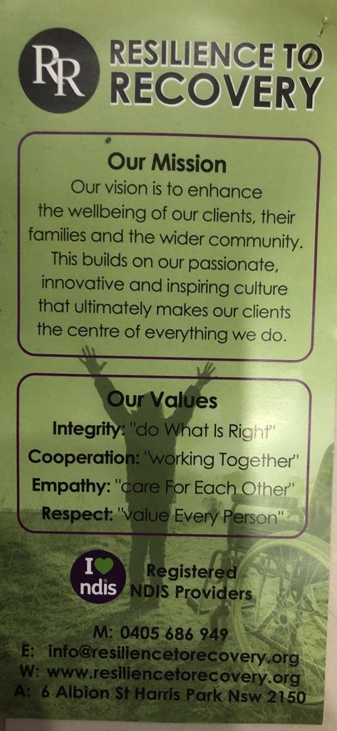 افتتحت السيدة فداء حسين حامد مركز “ريزيليانس تو ريكفري” رسميا يوم الاثنين في ٢٠١٩/٤/١في منطقة ماريلاندز لتقديم الخدمات اللازمة لذوي الاحتياجات الخاصة الحاصل على ترخيص من قبل “البرنامج الوطني للتأمين ضد العجز” ( NDIS) التابع للحكومة الأسترالية.
