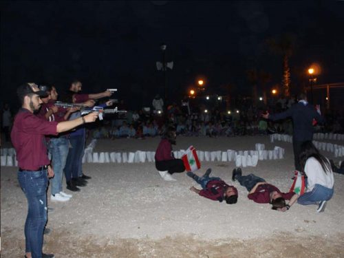بعدها، كان عرض مشهد تمثيلي من وحي المناسبة، وإضاءة الشموع التي تحمل رمز 13 نيسان، وتم إطلاق المناطيد المضيئة في سماء المدينة على وقع الأغاني الوطنية.