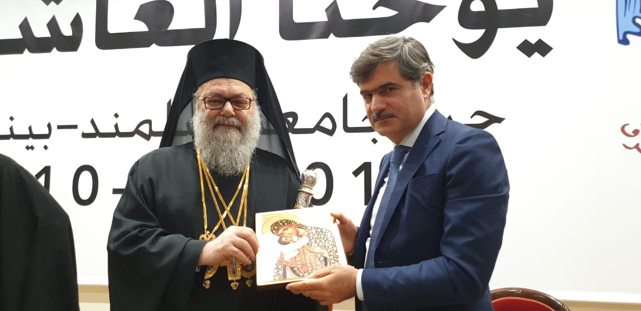 بعد ذلك قدم رئيس الجامعة الى البطريرك يوحنا ايقونة، كما قدم عميد الكلية الياس خليل درعا الى المتروبوليت باسيليس منصور، ودرعا آخر الى رئيس الجامعة الدكتور الياس الوراق.