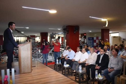 في البداية كانت كلمة ترحيبية من رئيس النادي محمود خضر أعرب فيها عن شكره للمهندس جان موسى على دعمه للنادي. وأشار إلى أن النادي يعمل باللحم الحي من دون مساعدات تستطيع دفعه إلى الأمام ودعم الطاقات الشابّة والرياضية الموجودة في النادي. كما عدّد إنجازات النادي والبطولات التي يشارك فيها والأبطال الذين يخرّجهم وخطة عمله للمرحلة المقبلة”.