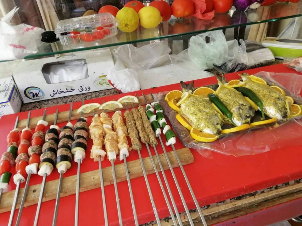 1) سمك مشوي على الفحم مع بطاطا وتوم ب 14000 كيلو