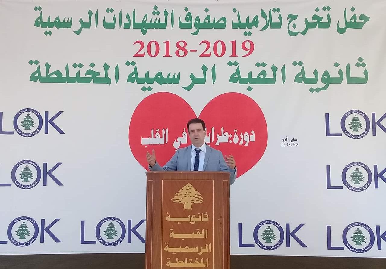 وفي كلمة مدير الثانوية الأستاذ بشير الخوري قال تغادرون مقاعد الدراسة و تنطلقون الى الأفق الواسع تحملون معكم الأحلام و الآمال و بعد مغادرة فروع الجامعة اللبنانية لم يبقَ في القبّة الا شفيعتها ثانوية القبة …