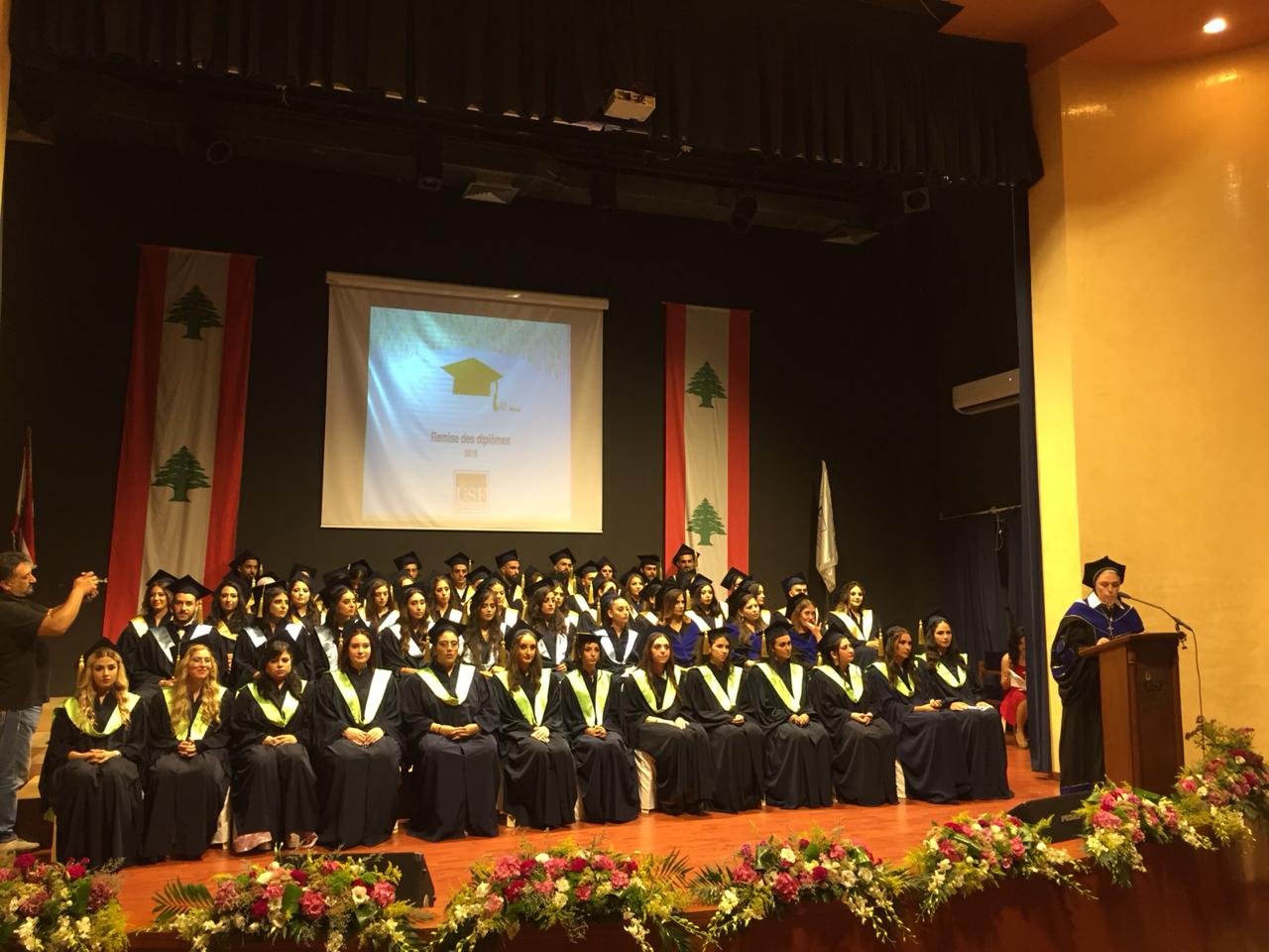 وثمنت جهود العمداء والاساتذة وهنأنتهم وهنأت “هذه الدُّفعةِ من المتخرّجينَ الّذين يُنشدون اليوم، بأرقى وأسمى الألحان، نشيدَ التميُّزِ وقد طالَ صداهُ ضفّةَ الحياةِ المهنيّةِ والاجتماعيّةِ المقابِلة.”