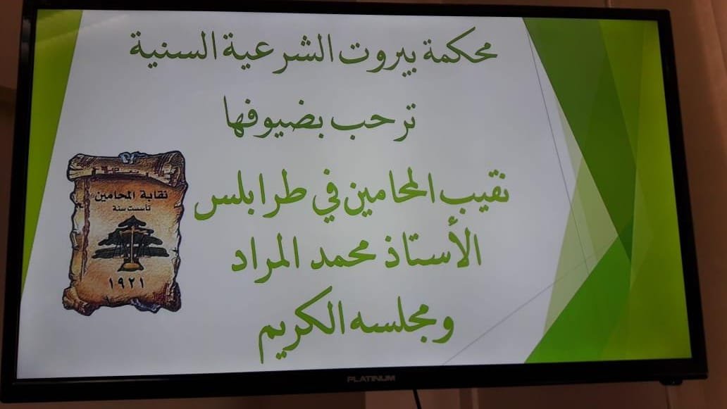 في زيارةٍ هي الاولى من نوعها، جال نقيب المحامين في طرابلس والشمال محمد المراد، يرافقه مفوض القصر الأستاذ بلال هرموش، ومممثل النقابة لدى محكمة طرابلس الشرعية الأستاذ محمد شما، على المحكمة الشرعية السنية العليا في بيروت، حيث كان في إستقباله رئيس المحكمة القاضي محمد عساف، وعدد من القضاة المنفردين في شرعية يروت، وممثلة النقابة في شرعية بيروت الأستاذة زينة المصري، ، وعدد من الزملاء المحامين وموظفي المحكمة.بدايةً كلمة ترحيبية من ممثلة النقابة في المحكمة الشرعية الأستاذة زينة المصري ثمنت فيها زيارة النقيب المراد، كزيارةٍ اولى من نوعها يقوم بها نقيب المحامين الى المحكمة الشرعية للاطلاع على سير أعمالها والكشف على غرفة المحامين ومتابعة أوضاعهم والإستماع الى مشاكلهم “.كما رحبّ الرئيس عساف بزيارة النقيب المراد ، مثنياً على نشاطه وإهتمامه ومتابعته لكافة الأمور المتعلقة بالمحامين والحفاظ على حقوقهم ومصالحهم ومتابعة مشاكلهم .المراد
