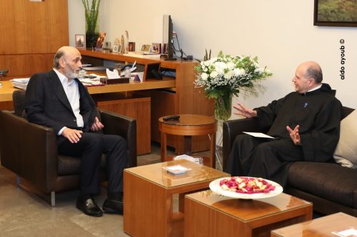 استقبل رئيس حزب “القوات اللبنانية” سمير جعجع، في معراب، النائب البطريركي الماروني الجديد المطران المنتخب انطوان عوكر الذي وجه له الدعوة للمشاركة في احتفال سيامته في الصرح البطريركي في بكركي في الخامسة والنصف من عصر الأربعاء ٣١ تموز الجاري. وشارك في اللقاء عضو تكتل “الجمهورية القوية” النائب عماد واكيم، رئيس مكتب التواصل مع المرجعيات الروحية في الحزب أنطوان مراد والسيد ماجد قسطنطين.