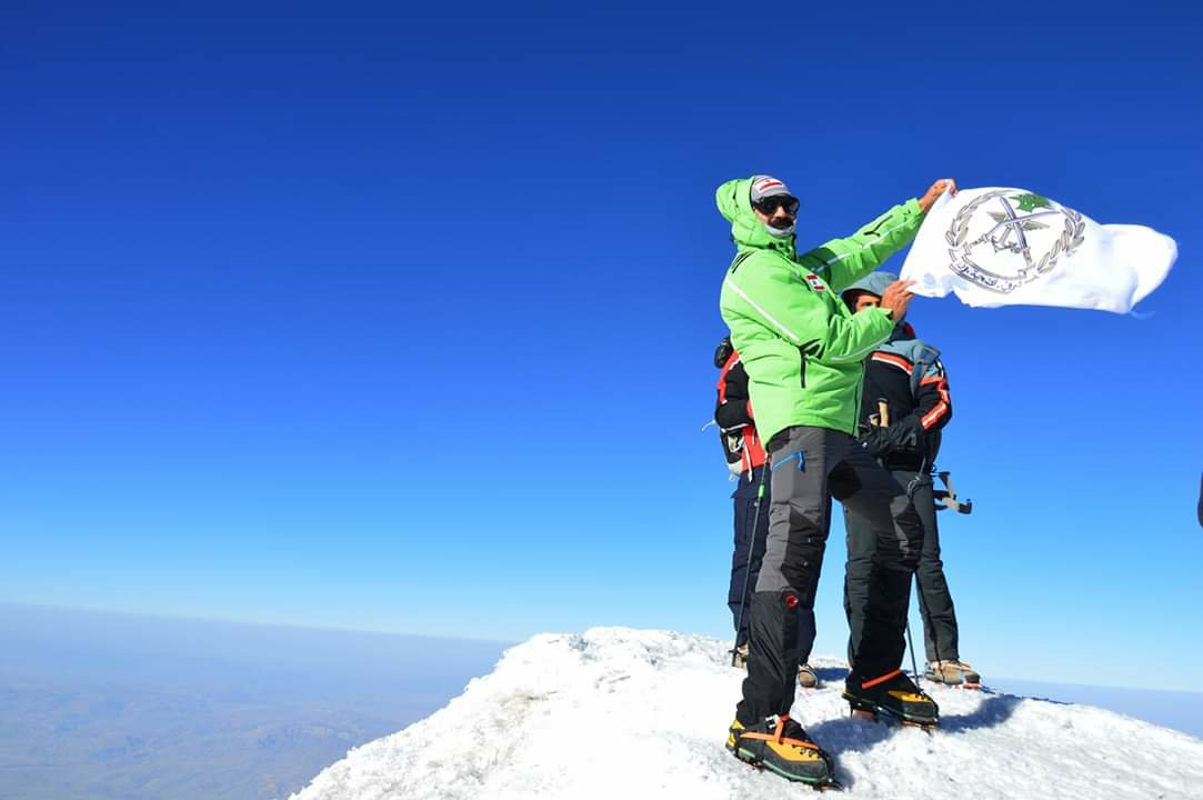 الزميل صلح يرفع علمي لبنان والجيش اللبناني على قمة جبل ارارات ويهدي هذا الانجاز الى الجيش اللبناني