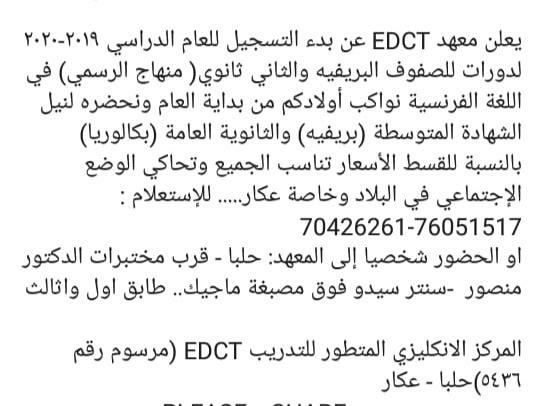 Jetzt Deutsch bei dem EDCT Center in Akkar lernen (Verordnung Nummer 5436)