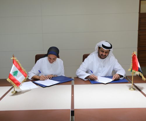 وقع سفير دولة الإمارات العربية المتحدة د. حمد سعيد الشامسي بعد ظهر اليوم إتفاقية تعاون مع رئيسة جمعية “عكارنا” عزة عدرة بشأن تنفيذ دورة بعنوان “بالتسامح نواجه التطرف والإرهاب” بهبة كريمة من مؤسسة “خليفة بن زايد آل نهيان للاعمال الانسانية”.