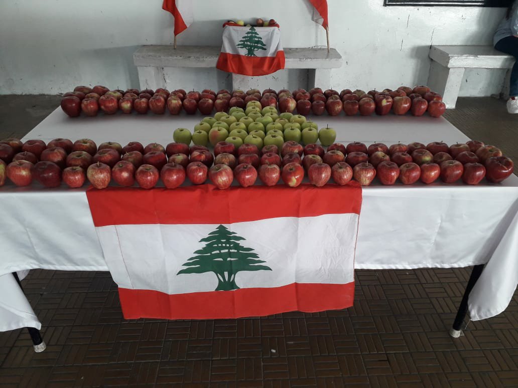 واختتم الحفل بالنشيد الوطني اللبناني ثم ضيافة التفاح وعصيره وحلوى التفاح.