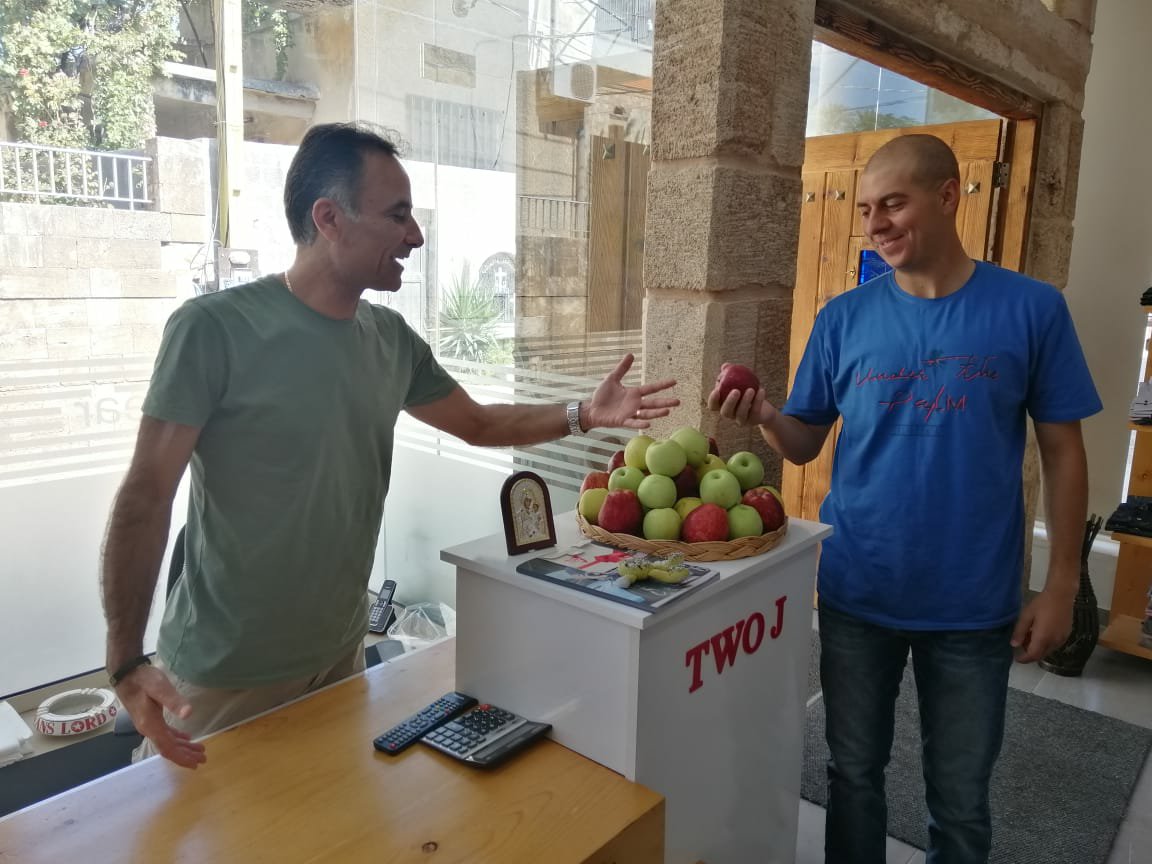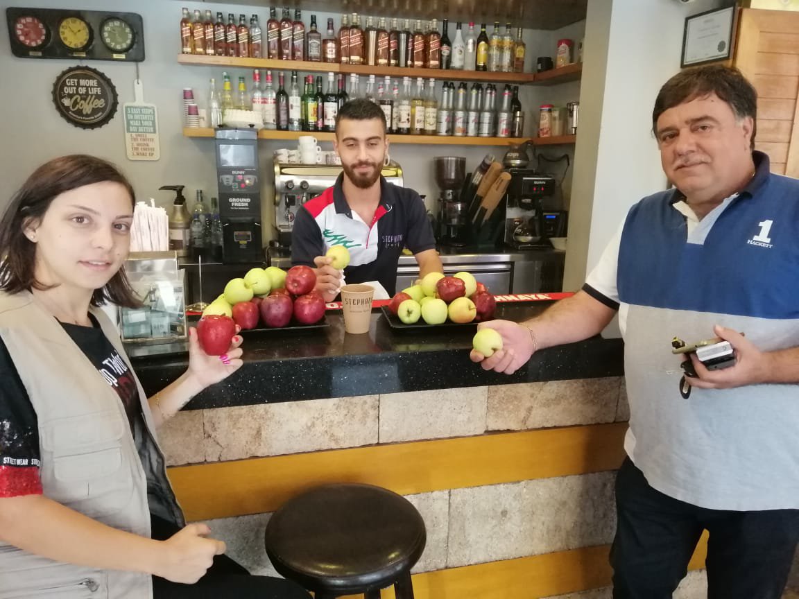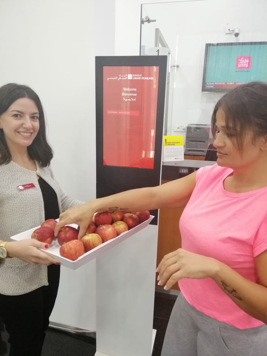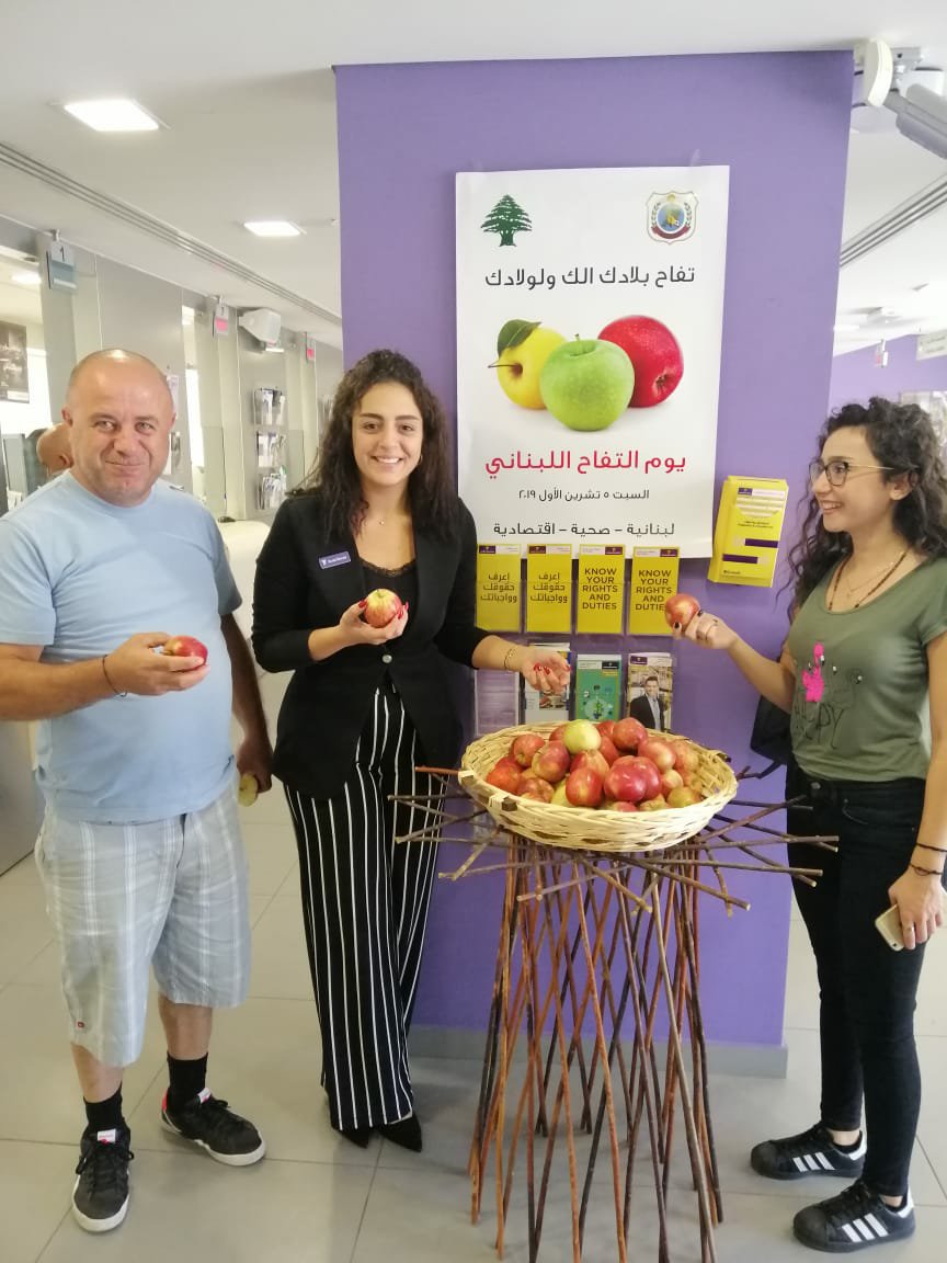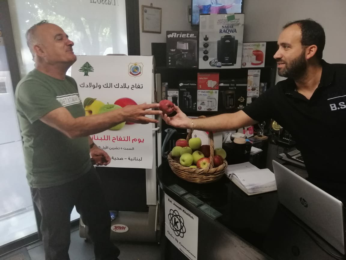 تتواصل فعاليات يوم التفاح اللبناني في البترون حيث تفاعلت المؤسسات والمحال التجارية والمصارف والشركات بالحملة على طريقتها فكانت ضيافة تفاح الجرد البتروني في استقبال الزبائن.