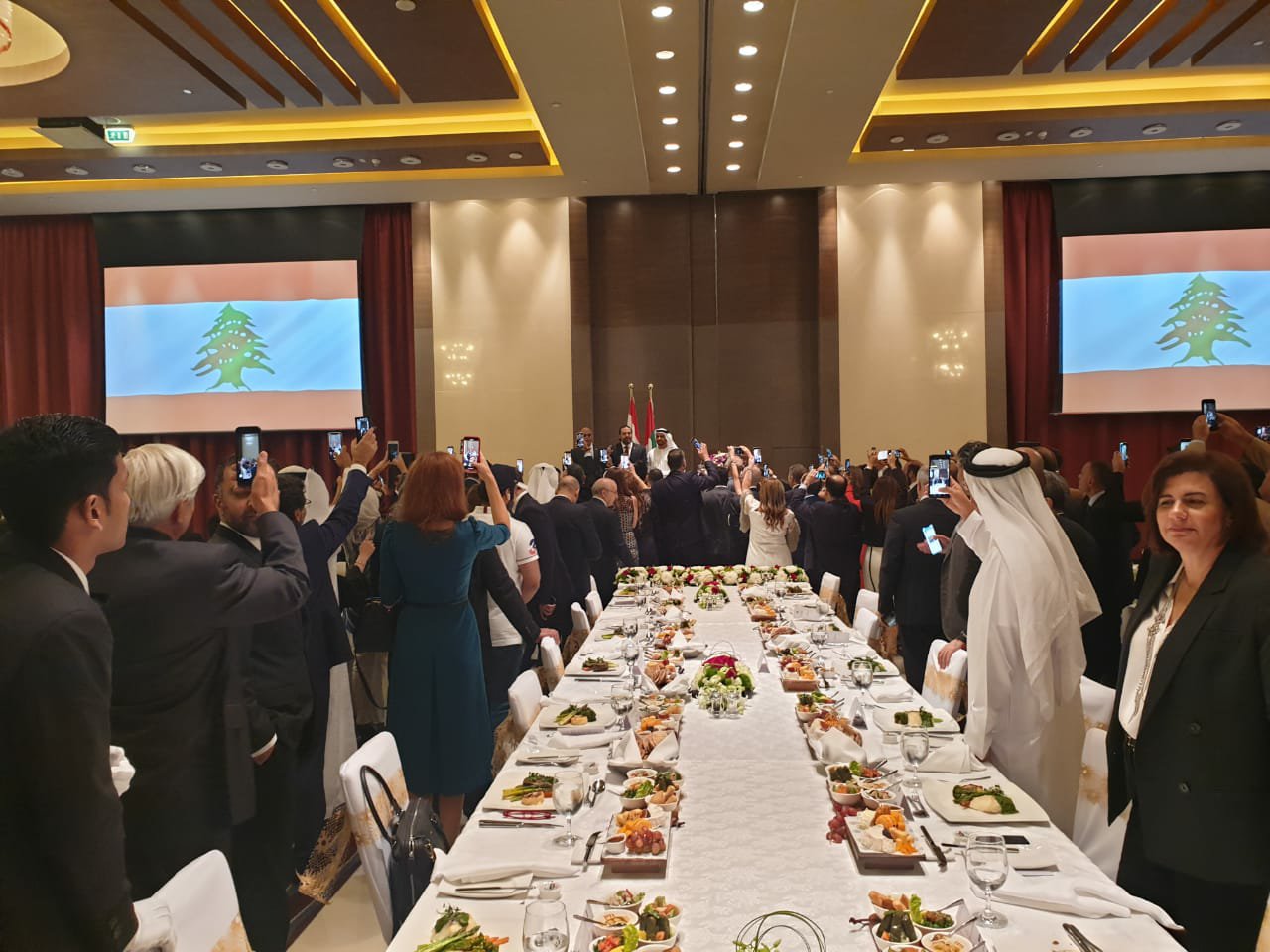 في مستهل زيارته لدولة الامارات العربية المتحدة للمشاركة في مؤتمر الاستثمار الاماراتي اللبناني، أقام رئيس مجلس العمل اللبناني في ابوظبي سفيان الصالح عشاء جامع في منزله على شرف دولة الرئيس سعد الحريري ..وذلك في حضور وزيرة الداخلية والبلديات ريّا الحسن، وزير الدفاع الوطني الياس بوصعب، وزير الاتصالات محمد شقير، وزير الصناعة وائل أبو فاعور، وزير الاقتصاد منصور بطيش ووزير دولة لشؤون الاستثمار والتكنولوجيا عادل أفيوني وسفير لبنان في الامارات فؤاد شهاب دندن وسفير الامارت في لبنان حمد سعيد الشامسي ووفد رفيع من الهيئات الاقتصادية ورؤساء مجالس ادارة المصارف اللبنانية بالاضافة الى 100 شخصية لبنانية واماراتية من رجال الاعمال.ألقى رئيس مجلس العمل اللبناني المهندس سفيان الصالح كلمة رحب فيها بدولة الرئيس والوفد المرافق قائلاً “إنه لشرف كبير أن تكون هذه الدار مستهلَ زيارتكم لدولة الامارات ، ففي ذلك تأكيدٌ على الأهمية التي تُوَلُّونها لنجاحات الإغتراب اللبناني بشكل عام، وللدور الأساسي الذي يؤديه في الاقتصاد اللبناني بشكل خاص.”واشار الحريري وفقا لما نقلته وكالة انباء الامارات، الى ان هذه الزيارة تمثل أيضاً فرصة “للالتقاء بالجالية اللبنانية في الامارات التي تعتبر اكبر الجاليات اللبنانية في منطقة الخليج العربي. وأكد أن الجالية اللبنانية في الامارات تعتبر ثروة استراتجية للبنان والامارات”.