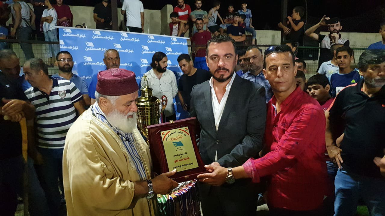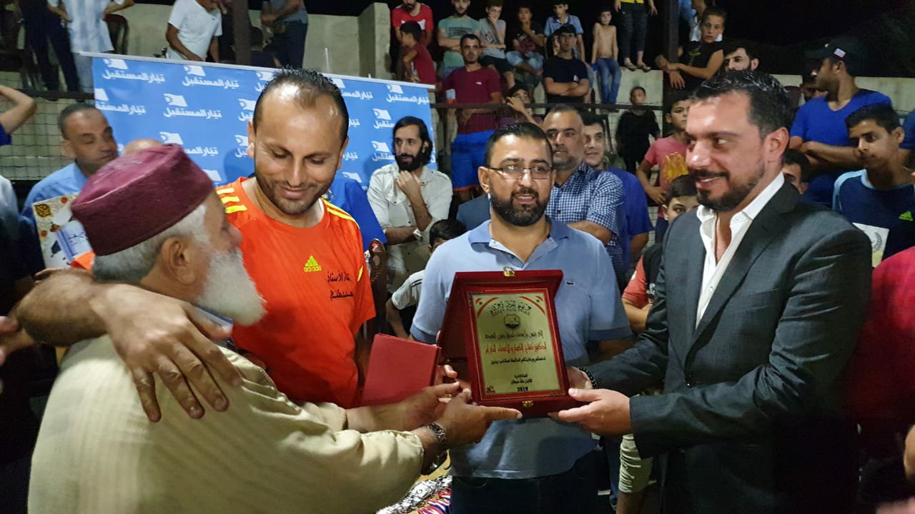 وعند نهاية المباراة بدأ الحفل الختامي بالنشيد الوطني اللبناني وكان تقديم من الشاعر محمد الحسن. ثم تحدَّث مسؤول مصلحة الرياضة في تيار “المستقبل” – عكار حسين مرعي وقال: