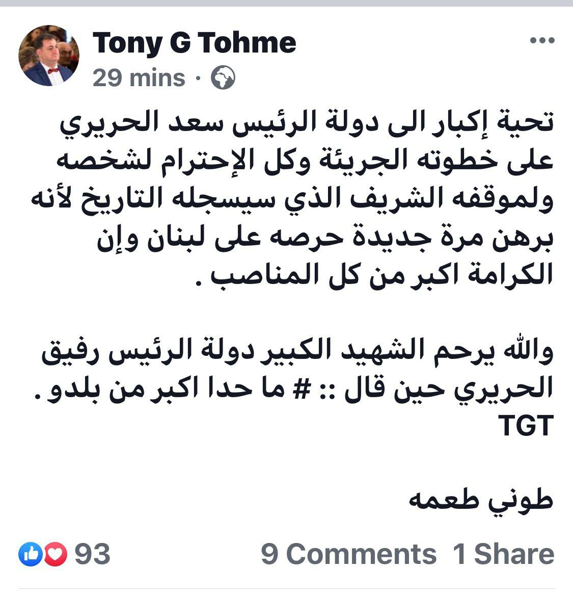 الرئيسية/اخبار لبنان ??/طوني طعمة: تحية إكبار إلى الرئيس الحريري على خطوته الجريئة اخبار لبنان ?? طوني طعمة: تحية إكبار إلى الرئيس الحريري على خطوته الجريئة أكتوبر 29, 2019 854 فيسبوك تويتر واتساب الشمال نيوز- عامر الشعار شارك هذا الموضوع:فيس بوكX أكتوبر 29, 2019 854 فيسبوك تويتر واتساب شاركها فيسبوك تويتر واتساب تيلقرام مشاركة عبر البريد طباعة