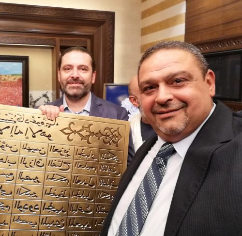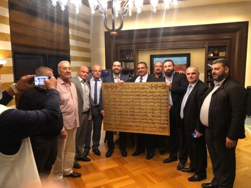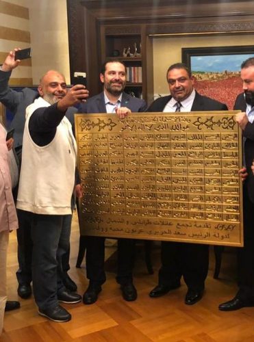 ثم قدم العمري والوفد المرافق إلى الرئيس الحريري لوحه عملاقة كتب عليها أسماء الله الحسنى مقدمة من تجمع عائلات طرابلس والشمال عربون وفاء وتقدير ..