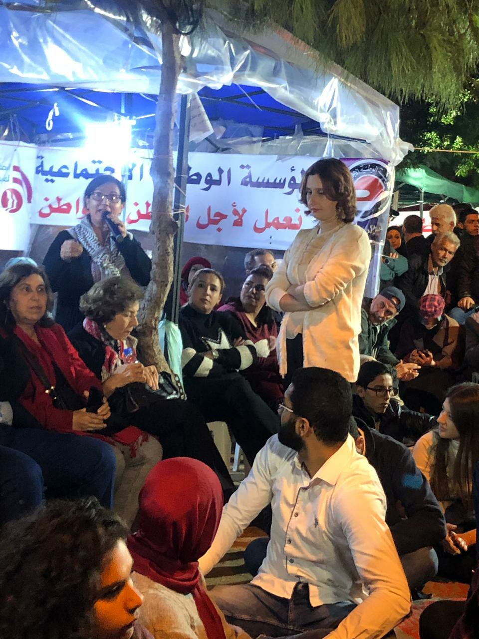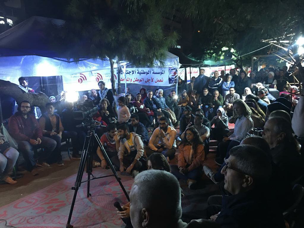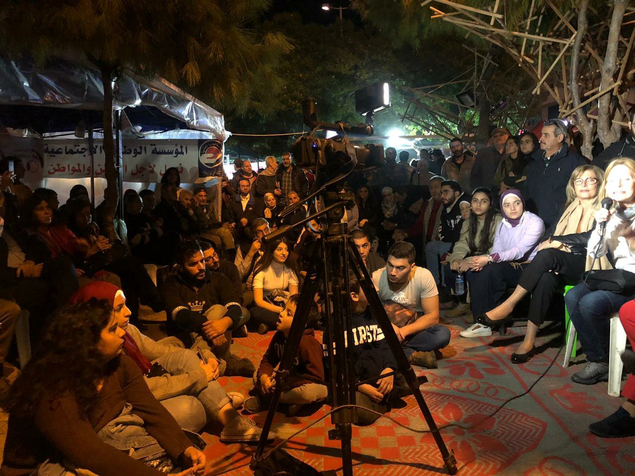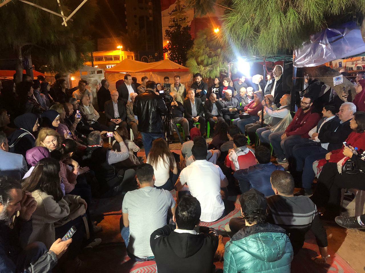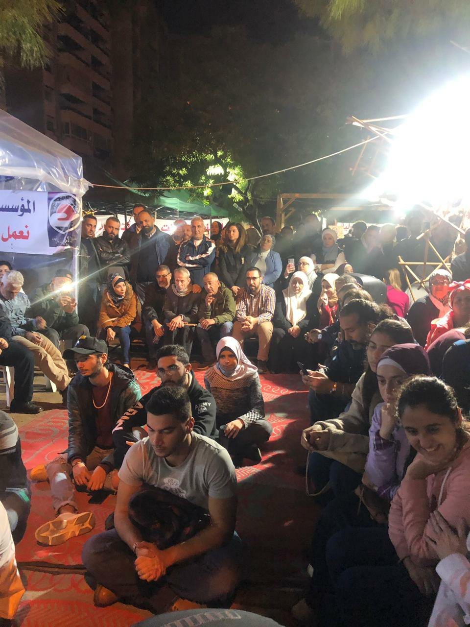 بعد جولة في الساحة، عقد حوار مفتوح بين الوفد وحشد موسع ومتنوع من المنتفضين، فاض عن خيم كثيرة، ما اضطرنا الى توسيع مساحة الحوار لتطال بضعة خيم الى جانب خيمة الجامعة، ما اضفى طابعا استثنائيا على هذا النشاط.