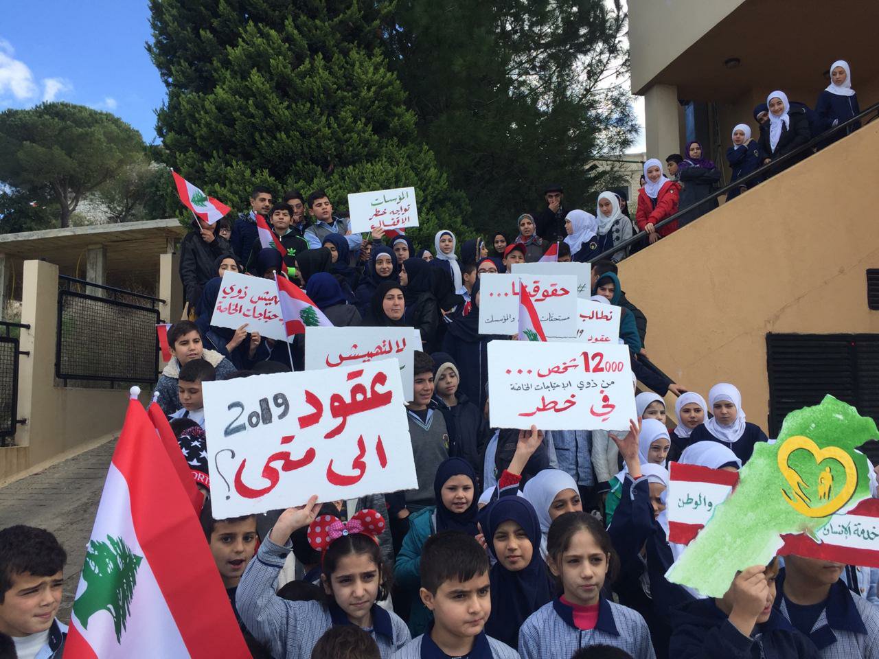 نظم مركز الإمام الباقر (ع) للرعاية الاجتماعية في راشكيدا البترونية وقفة احتجاجية لتلامذته الذين تجمعوا في باحة المركز رافعين الأعلام اللبنانية ولافتات طالبت بمستحقات مراكز الرعاية وبتوقيع عقود 2019 وشارك في الوقفة الى عدد من ذوي الطلاب والمشرفين على النشاطات مدير المركز محمد اسماعيل.