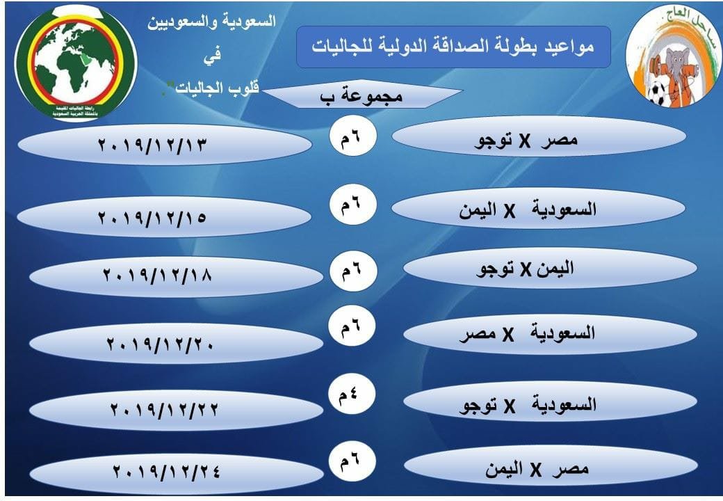 حيث تنتظر عددًا من الفرق المشاركة مواجهات قوية في البطولة التي تنطلق -ان شاء الله- 12 ديسمبر بمباراة الافتتاح بين فريق جاليات الصومال وفريق جاليات الهند وهي أكثر الفرق شعبية جماهيرية في المملكة .