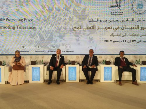 انعقد بأبوظبي الملتقى السنوي السادس لـ”منتدى تعزيز السلم في المجتمعات المسلمة” حول ” دور الأديان في تعزيز التسامح: من الإمكان إلى الإلزام ” من 9 إلى 11 ديسمبر 2019م برعاية كريمة متواصلة من سمو الشيخ عبد الله بن زايد آل نهيان وزير الخارجية والتعاون الدولي وبرئاسة معالي العلامة الشيخ عبد الله بن بيه رئيس منتدى تعزيز السلم في المجتمعات المسلمة ورئيس مجلس الإمارات للإفتاء الشرعي.