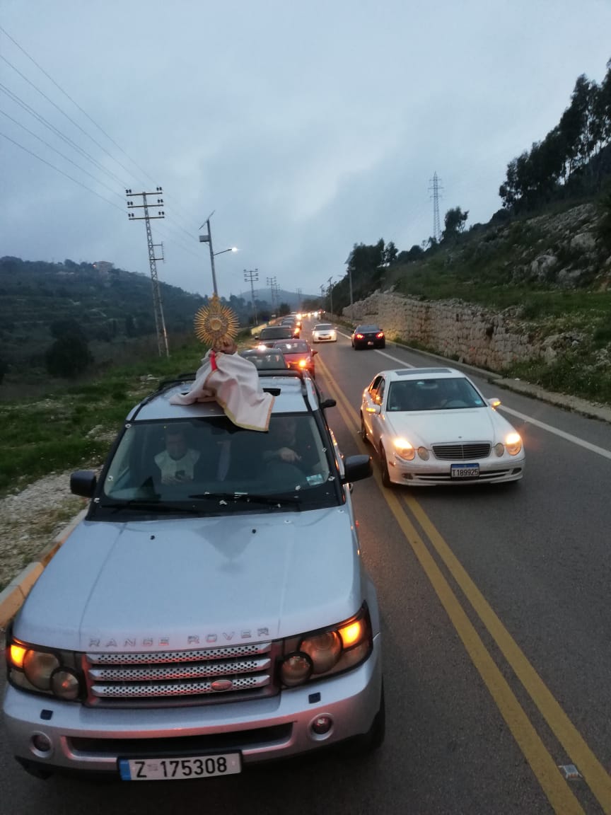 مسيرة سيارة وتطواف بالقربان المقدس رعايا قطاع التلاقي والحوار في أبرشية البترون