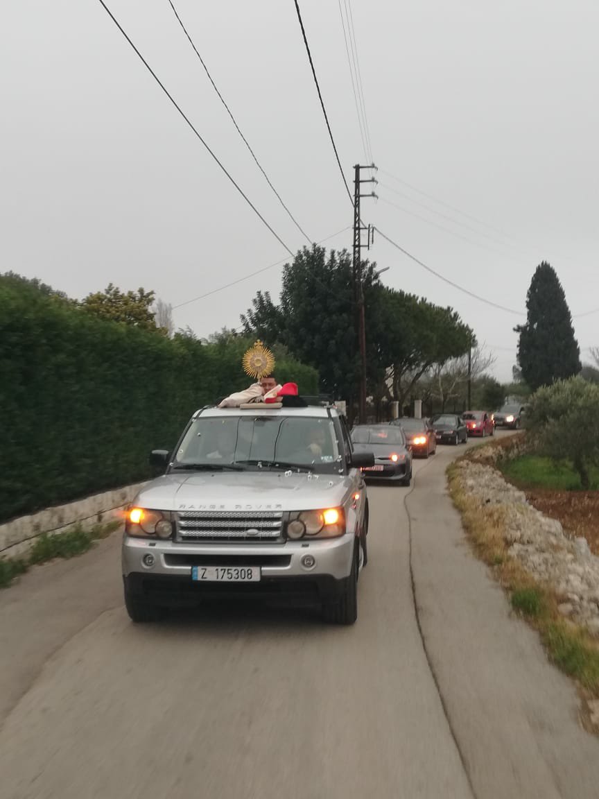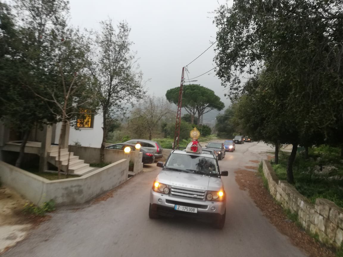 واستقبل الأهالي شعاع القربان على جوانب الطرقات ورفعوا الصلوات على نية شفاء المصابين بفيروس “كورونا” ومن أجل خلاص لبنان والعالم من هذا المرض.